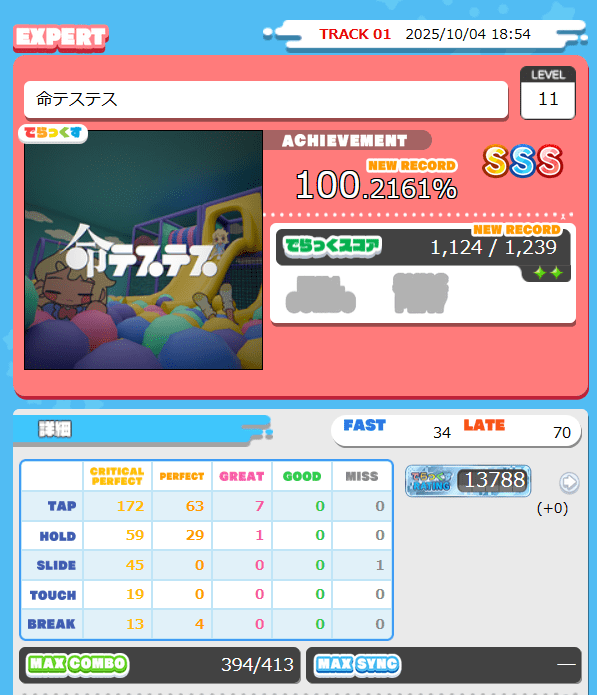 | 称号 | 地雷踏んじゃったってそれもテスト | 命テステス/1 MISS |