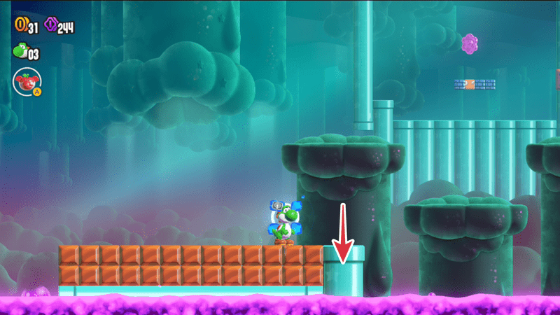 動く土管に乗って進んだ先にワンダーシードがあります。