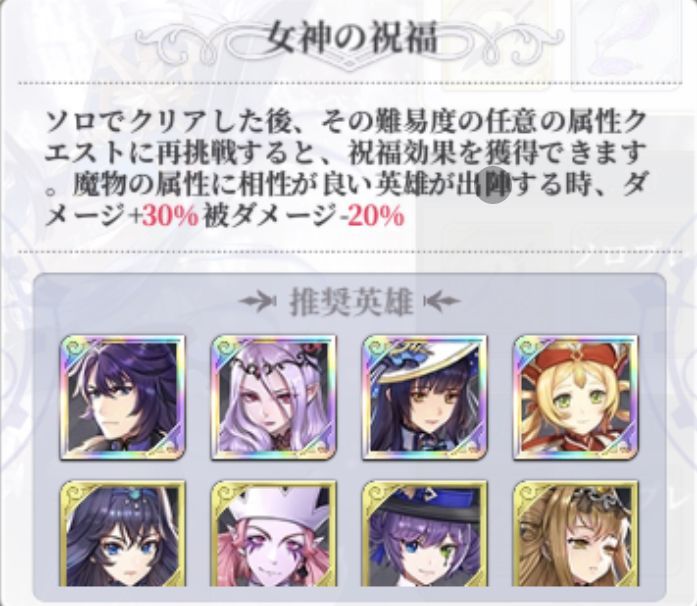 相性の良い属性の英雄を出陣させると女神の祝福を得ることができ、