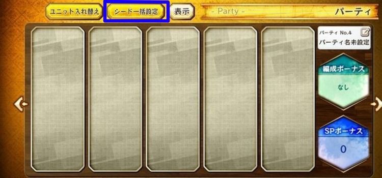 パーティ画面の上部に「シード一括設定」というボタンを使うと簡単にセットできます。