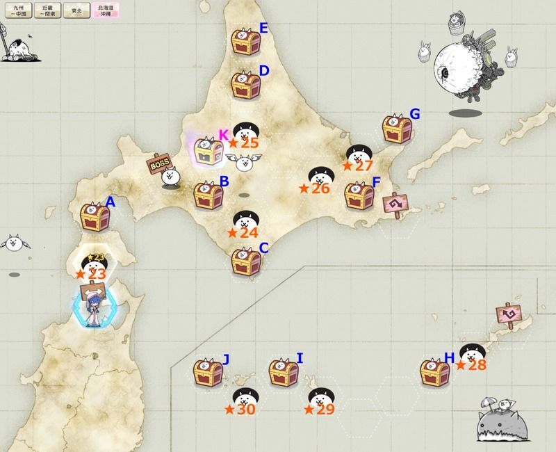 | ★5~8 | 6 | 570 | 150 | ★5: ★6,7: ★8,9:ネコムート ★10,11:ネコにょらい: ★12,13:巨神ネコ ★14~17:ぶんぶん先生 ★18,19:地龍皇帝ソドム ★20,21:巨神ネコ ★22,23:ぶんぶん先生 ★24,25:地龍皇帝ソドム | ||||