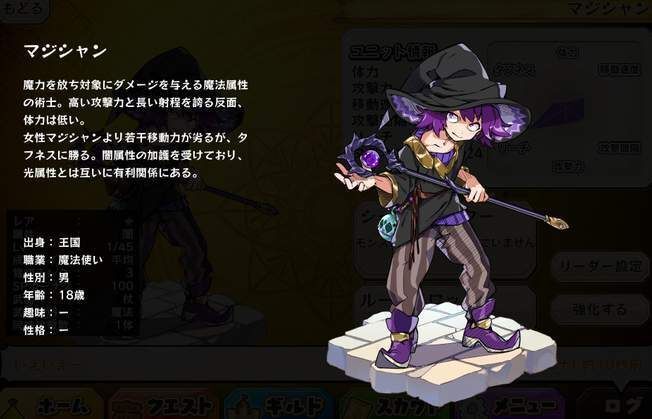 ※ ステータスの項目名でよくわからない場合は「ユニットページについて」を参照してください。
