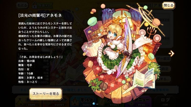 アネモネ「本でみたような色とりどりのお菓子に囲まれて、一緒にお茶会をしましょう……!」