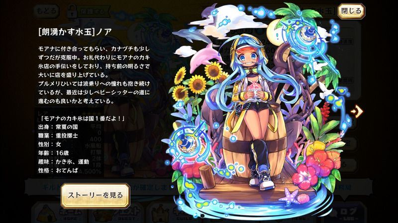 ノア「えへへ、まぁね! 波乗りの練習以外は、アルバイトばっかりだったから。最近はね、友達のカキ氷屋でもアルバイトを……、」