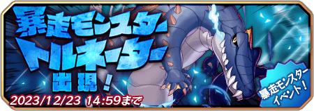 期間中はクエストクリア時に水属性のトルネーターと遭遇いたします。