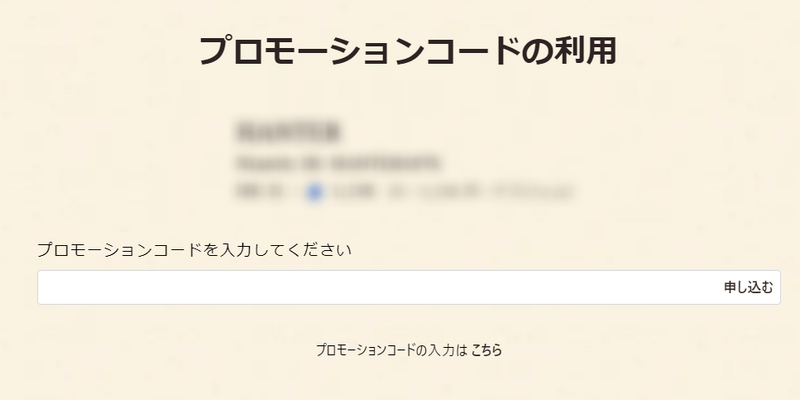 | ③ | 情報を確認後プロモーションコードを入力する![]() |