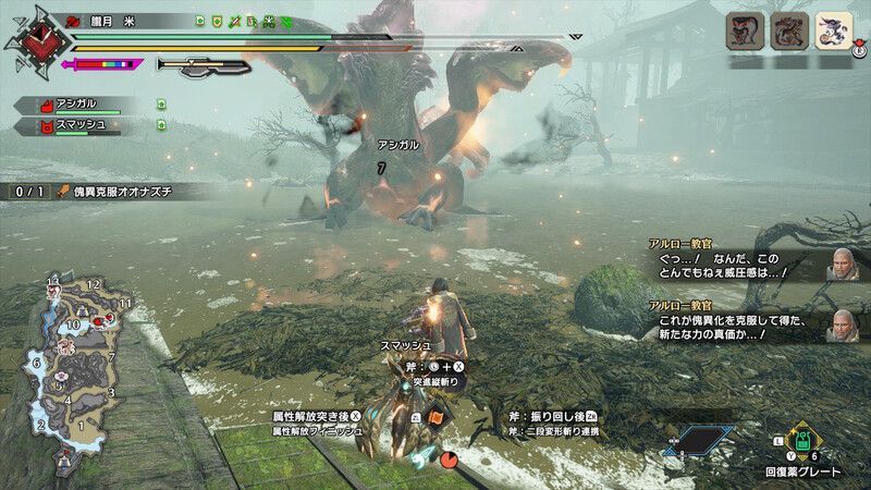 怪異克服オオナズチはブレスや舌攻撃など中距離では回避しづらい攻撃を頻繁にしてきます。