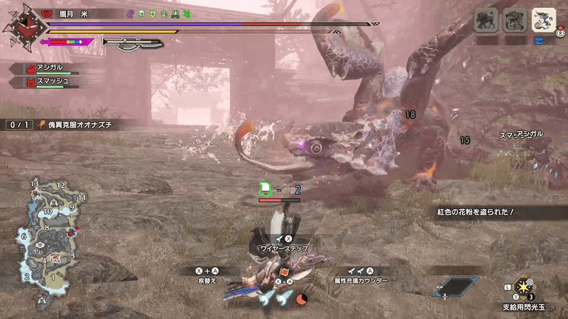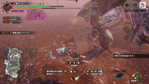 オオナズチの体力が低くなると、爆発後に「傀氣脈動状態」に移行します。傀氣脈動状態時はオオナズチの見た目が多きく変化しマップが紫の霧に覆われます。