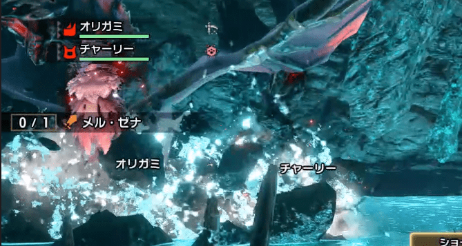 メルゼナは形態変化中に瞬間移動から攻撃を行います。