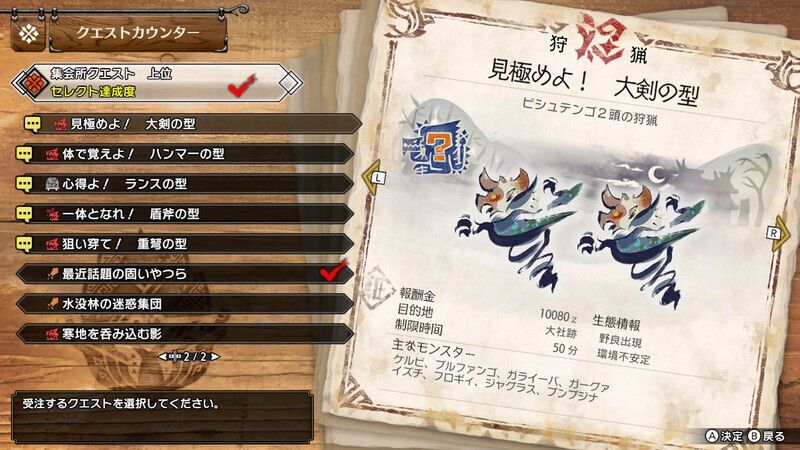 MR4のセレクトクエストを3つクリア