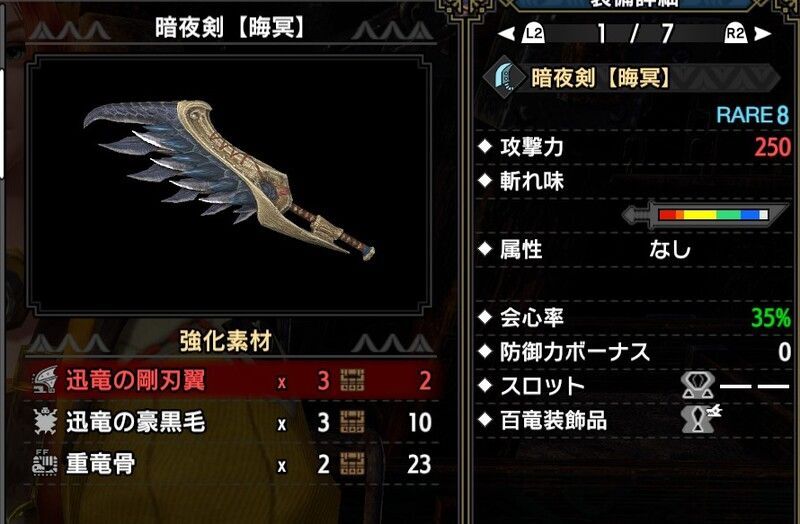 | 迅竜の豪黒毛 | ナルガクルガのターゲット報酬など |