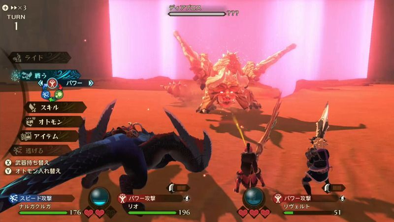 ロロスカ地方までは回復薬や狩猟笛のサポートがありましたが、リヴェルトは大剣なため純粋なアタッカーです。HP管理には注意しましょう。