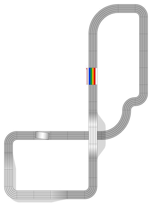 | 構成 | ストレート×18 ショートストレート×4 90度コーナー×6 R2100コーナー×2 スロープ×2 ナイアガラスロープ×2 ループチェンジャー×1 |