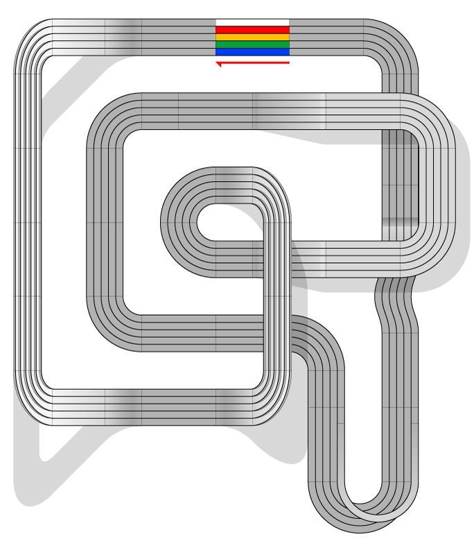 | 構成 | ストレート×22 ショートストレート×4 バンクアプローチ×4 90度コーナー×12 スロープ×2 ウェーブ×1 ドラゴンジャンプ×1 バーニングチェンジャー×1 |