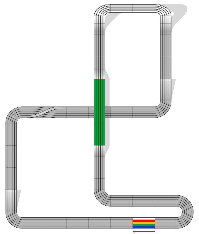 | 構成 | ストレート(芝含む)×26 ショートストレート×4 90度コーナー×8 スロープジャンプ×2 バンクアプローチ×2 ロングレーンチェンジ×1 |