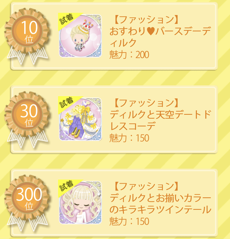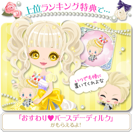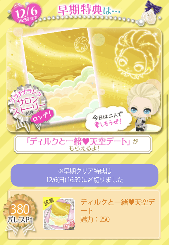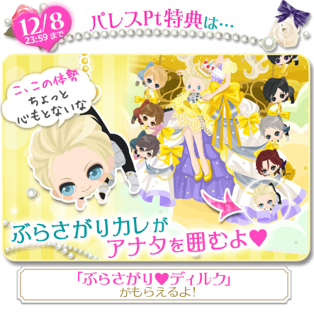 | 530パレスpt | ![]() | ディルクをお祝い♥天空ブランコ 【魅力:150】 |