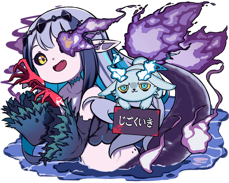 | スキル1 | 【スキル】深淵接待 敵全体に威力60の水属性ダメージを与え、さらに敵全体に威力60の闇属性ダメージを与える。※この攻撃は不利属性を無視する。 |
