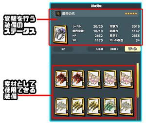 ※素材として選択した装備は消滅してしまいますのでご注意ください。