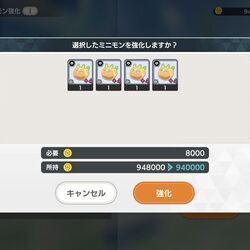強化可能なミニモンのみ表示されるので、編成しているミニモンがいれば優先的に強化しておくと戦闘で恩恵を受けやすくなります。