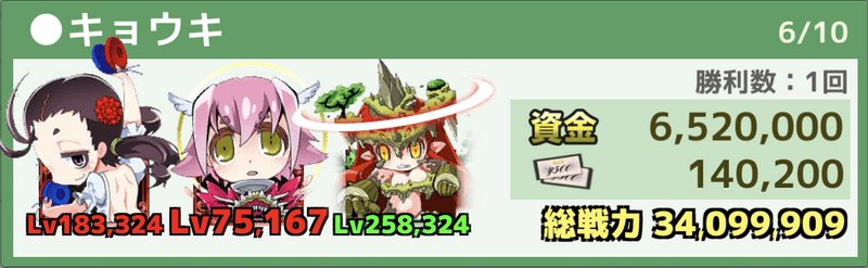 | No. | キャラ1 | キャラ2 | キャラ3 |