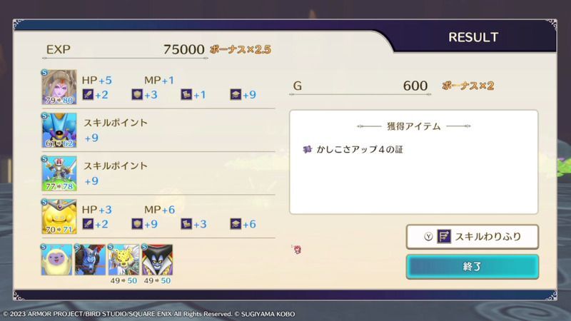モンスターのレベルが上がるとスキルポイントを入手できます。スキルポイントはモンスターの能力値や特技を習得させることが可能です。