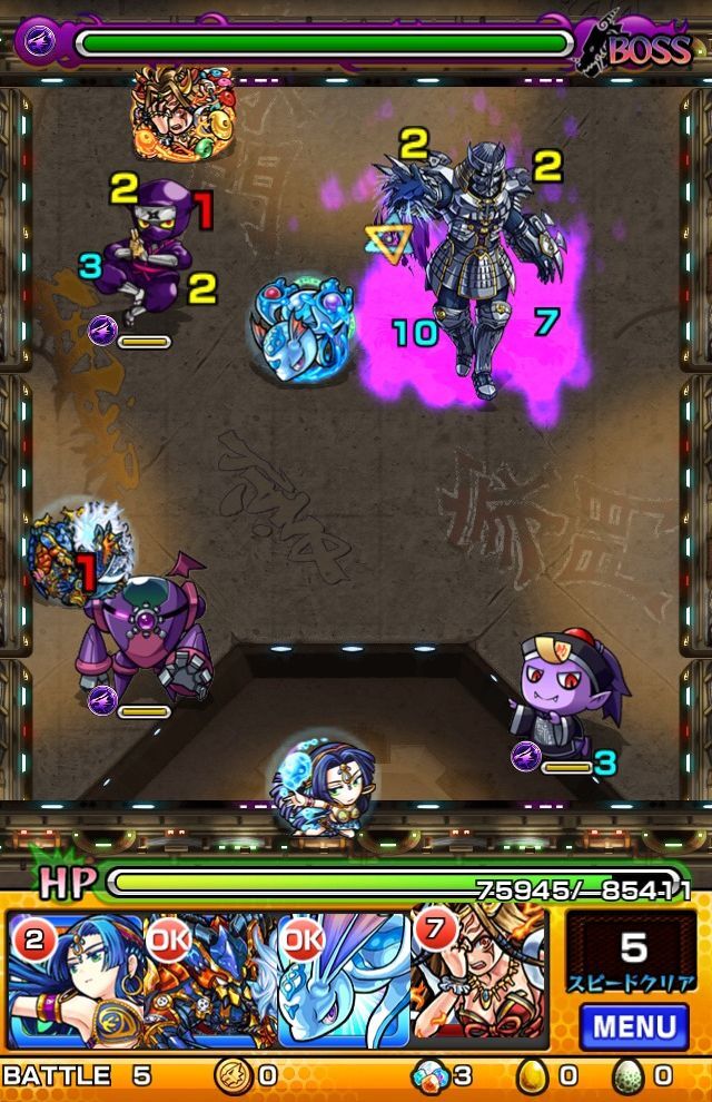 出現する敵はすべて闇属性なので、光属性モンスターで固めると若干つらくなる。