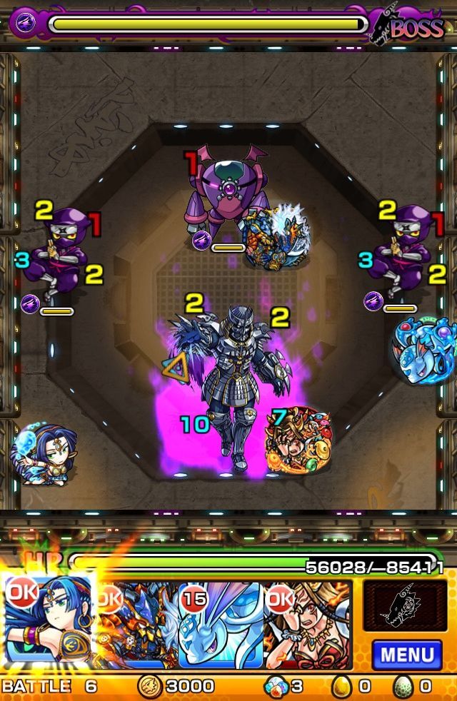 【リーダー】神化テキーラ、ナポレオン、マーリン、おりょう、神化エクリプス、ゴッスト、超絶キャラ6種