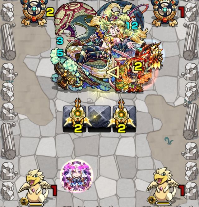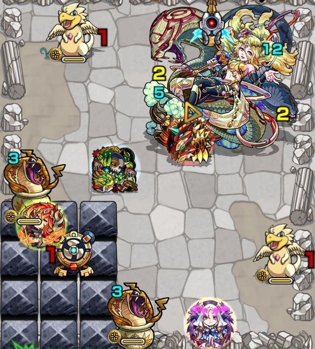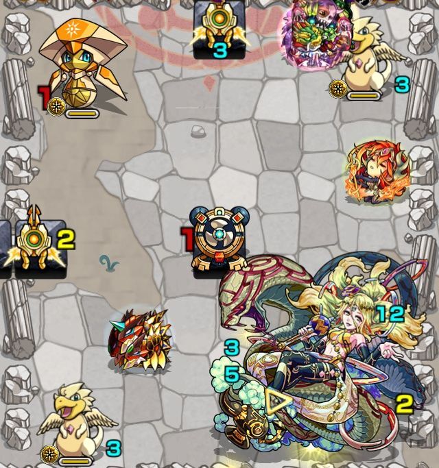 - クエスト全体を通してダメージウォールとブロックが出現する。特にADWのモンスターは必ず3体以上連れて行こう。ブロックは特に対策は必要ないが、貫通がいると比較的動きやすくなる。