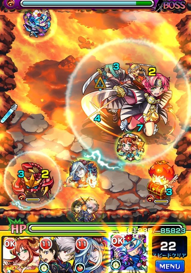 スピードアップやメテオ系のストライクを使って、ボスと雑魚を同時に倒しに行こう。