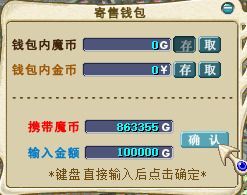 2.所有寄售後所得的魔幣與月幣,都將存入此錢包暫為保管,可自由進行存取操作,攤位自動續期也將從此錢包扣除