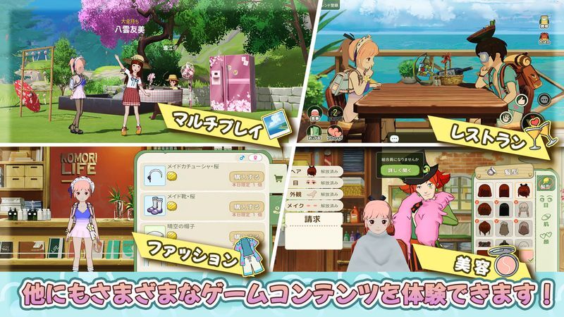 裁縫やイベントでさまざまな衣装やアクセサリーなどを手に入れて、自分だけのコーディネートを楽しめます。