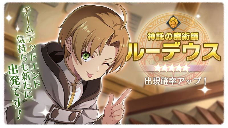 | 概要 | ★5キャラクター『ルーデウス【神託の魔術師】』がピックアップガチャで登場! 本ガチャでは『ルーデウス【神託の魔術師】』の出現確率がアップ! |