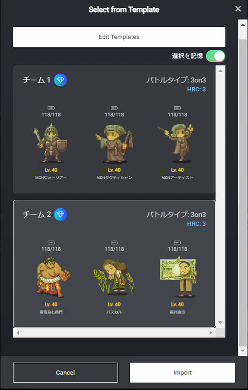 チームの切り替えは手動でする必要がありますが、これで低レベルクエストの周回もかなり楽になります。