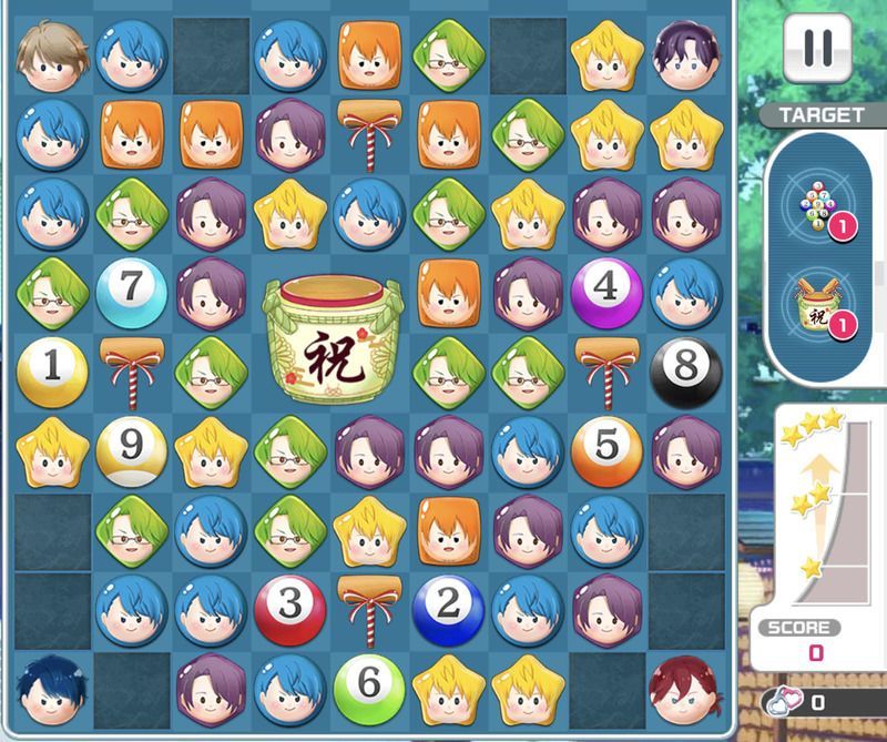 作用範囲が広いひらめき×ボムが良い位置で出せれば、ビリヤードを無視してお年玉が回収できます。特効の【優しく介抱して】桧山貴臣などのスペシャルピースの隣に別のスペシャルピースを作るスキル、またはビリヤードボールを小さい数字から2個ずつ消してくれる【静かに燃える、大輔ブルー】関大輔のリーダーだとさくさくクリアが期待できます。