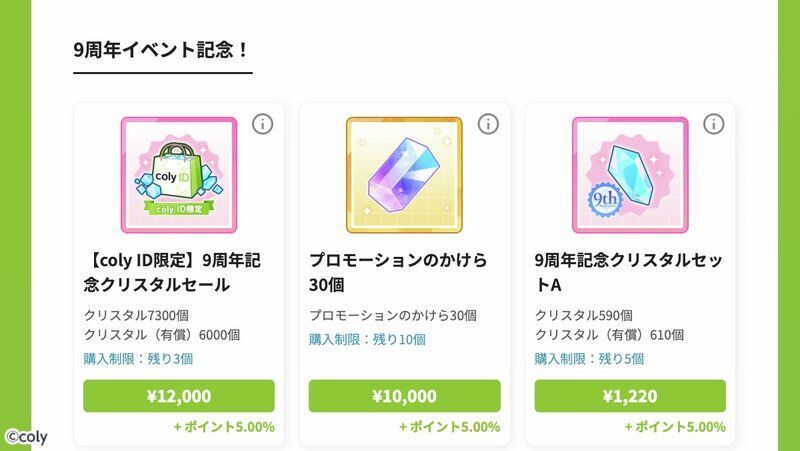 メンテナンス中は、coly IDでのアイテム購入が利用できません。