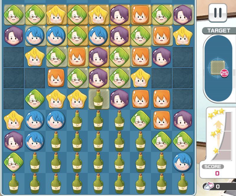 「由井孝太郎(指揮者)」は楽譜を7個ヒットするとピースを色別に揃えます。ピースが揃うと、カラーガラス板(ピンク)の上はほぼピンクピースになってスペシャルピース化し、ガラス板は消えます。