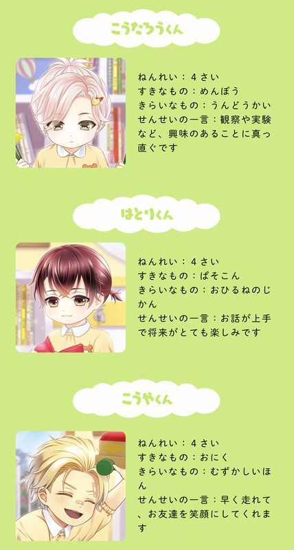 - うさぎ組:ひかるくん、きょうすけくん、なつきくん