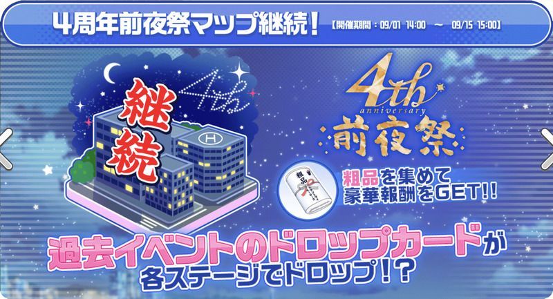 過去イベントのドロップカードもドロップ!4周年前夜祭マップについての詳細はこちら↓
