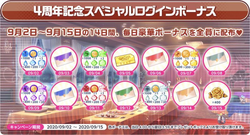 | 9/14 | 選べるRevelガチャチケット…1枚 |