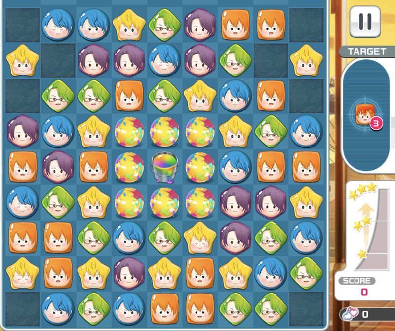 - ステージ4:花とペンキとガラス板のステージ。ペイントピースを出現させるほど難しくなる。極力ペンキをヒットしないように気をつける。ペンキをヒットしてしまうと難しくなる上もともとのターン数が厳しめなので、羽鳥さん・神楽さん・志音くんなどの有利なスキル持ちがいない編成の場合は、念のため特効チームを避けて予備やスキル特化型チームを出すのが安全。