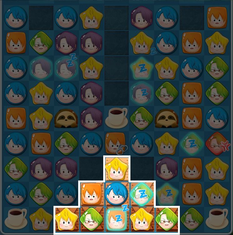 5段目のシャツは意外と隣接マッチしにくく、またたいていのスキルが発動するターン数までに前線が上がってきてしまうので、そこだけうまくいけばクリアは難しくないでしょう。