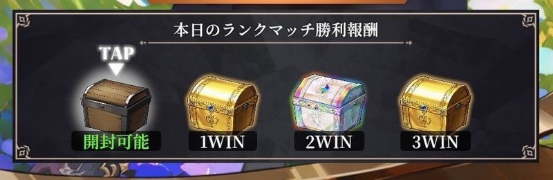 ・ランクマッチ・フリーマッチ・ルームマッチのいずれかで勝利するごとに1個ずつ宝箱が開封できます。
