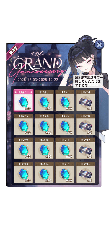 1.5周年記念ログインボーナス第2部