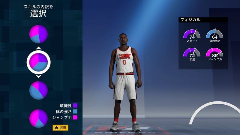 スキルの内訳はシュートが最も大きく、次にフィニッシュが大きく、プレイメイキングとディフェンス/リバウンドが小さいという内訳がオススメです。