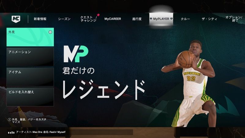 外見はMyCAREERを開始して、MyPLAYERのタブから選択できます。