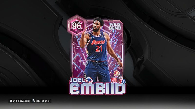 「Joel Embiid」はポストフェードなどのスキルが高い選手カードです。ポストプレーに関するバッジも所持しているため、ポストポジションで活躍しやすいです。