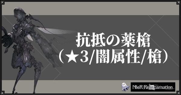 ニーアリィンカーネーション(リィンカネ|ニーアアプリ)の抗抵の薬槍(星3)のステータスとスキル、ウェポンストーリーを掲載しています。