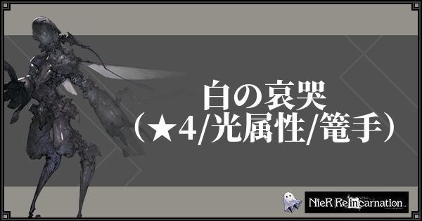 ニーアリィンカーネーション(リィンカネ|ニーアアプリ)の白の哀哭(星4)のステータスとスキル、ウェポンストーリーを掲載しています。