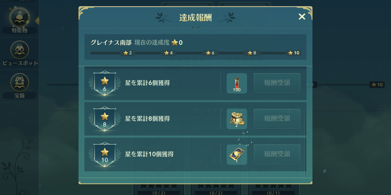 各エリアで獲得できる特別な戦利品を登録することで、達成度に応じて報酬を獲得することができます。
