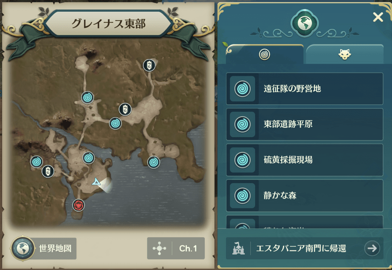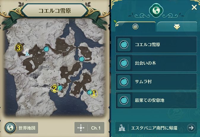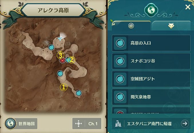 各地域にはビュースポットが置いてあり、解放することで「記録」→「冒険記録」→「ビュースポット」の実績を達成することができます。